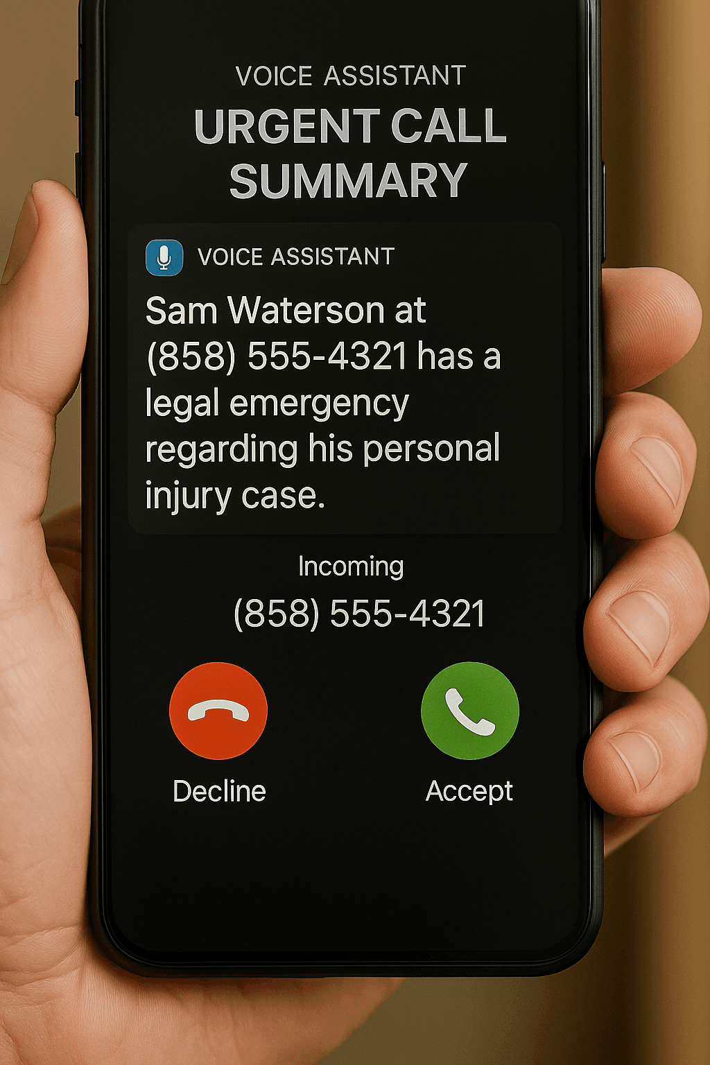 Clients need to know they can reach your firm when it matters. If a call is urgent—like an arrest, accident, or time-sensitive filing—your Voice Assistant can: - Forward the call directly to you or your on-call attorney - Send a concise call summary so you know the issue before you say “Hello” For routine matters, the assistant: - Handles FAQs - Books or reschedules consultations - Captures intake details and sends them to your system Your assistant is designed to escalate to a human when it should—never to block access. So when your phone rings from your assistant, you know it’s important and you’re prepared.
